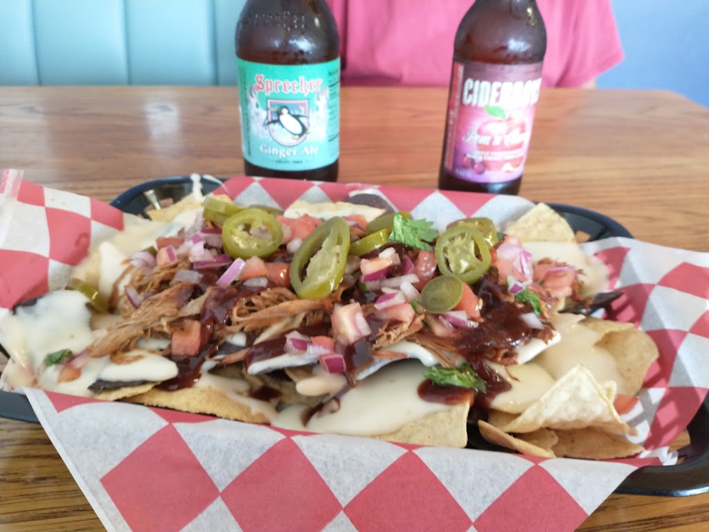 The pulled pork quesadilla and the burgers are great, especially with garlic Parmesan fries. Good selection of drinks including root beer and lemonade. Most of the outdoor seating is nicely shady.