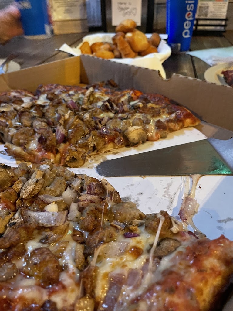 Deluxe pizza was excellent. The flavors on the Philly cheesesteak pizza weren’t quite right