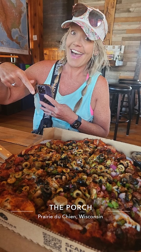 My boyfriend and I are from Indiana. We are staying in Iowa for a mini vacation and went hiking at Pikes Peak State Park. We decided to hop across the state border into Wisconsin for our dinner. We fell upon The Porch and were extremely happy with our meals (Prime steak & cheese, and Battered shrimp). We both agreed they were delicious and wish we could have tried more options as too much sounded good! Everyone that we encountered that was working was so kind. We ended our night with ice cream that was also 10/10. I can't wait to come back next time we are in the area to try something else!
