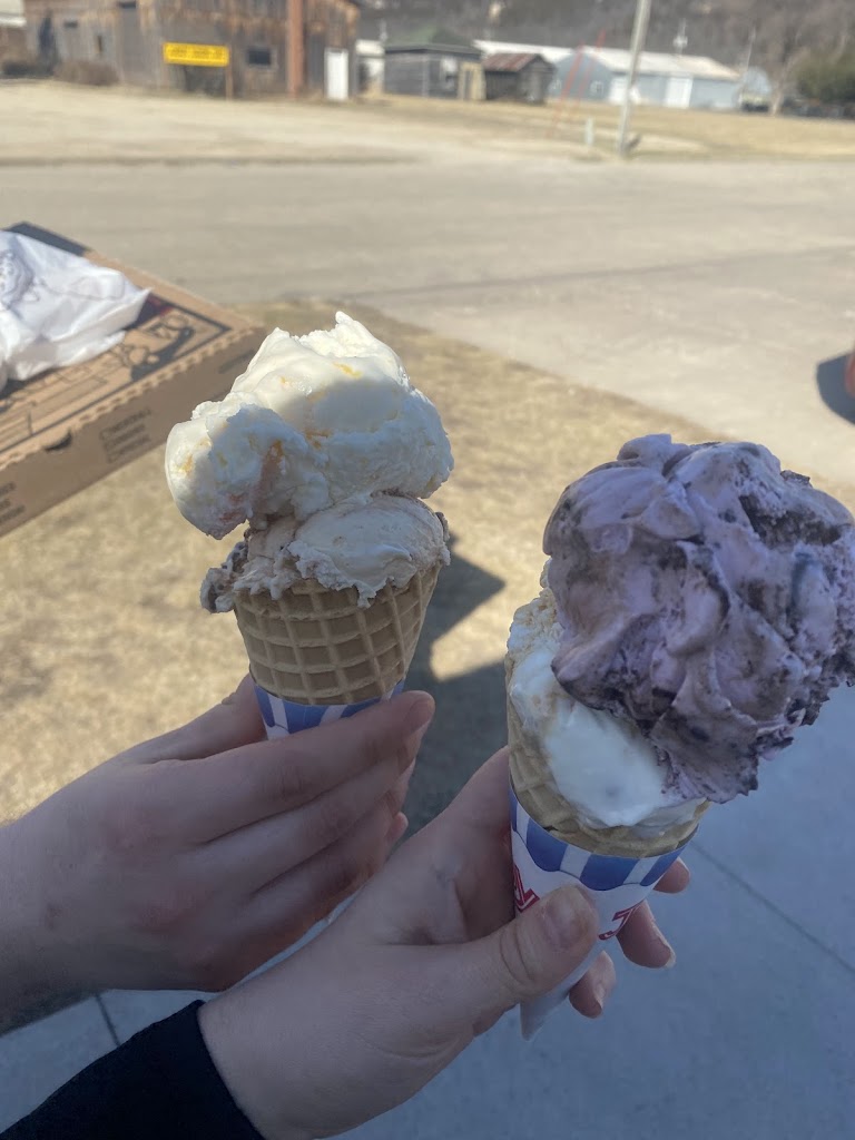 Great ice cream with a nice variety of flavors, and we had the fried chicken sandwiches, which was good as well. The staff were very friendly and checked in on us. The porch is air-conditioned and comfortable on our hot day. The only negative was that the food took a long time to get, but they were busy, and we were not in a rush.