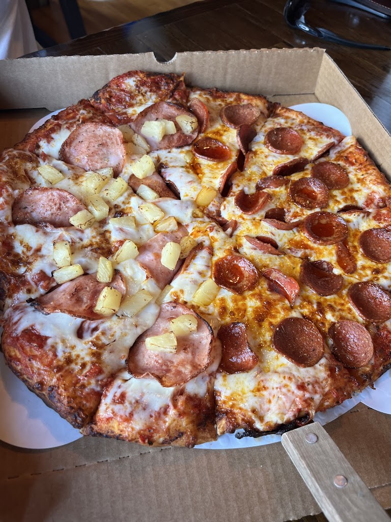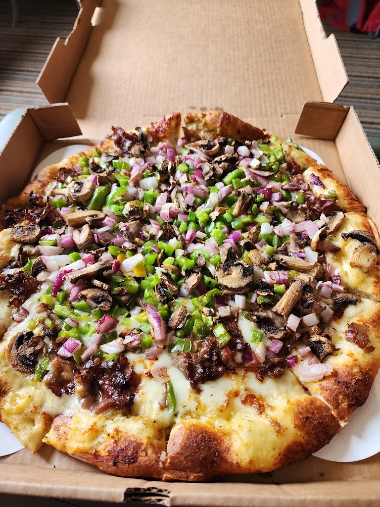 We ordered pizza, and it was fantastic—loaded with toppings and rich in flavor. What most places would call "extra cheese" and "extra everything" seemed to be their standard. If we had more time in town, I’d definitely come back to try the burgers too!