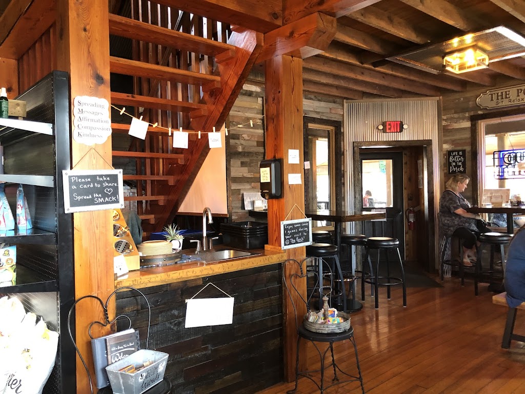 What a cozy restaurant! I loved the rustic charm of the wood paneling, floors and decor. It was also nice to have the option of inside or covered outside seating. The staff were absolutely the sweetest and it was hard to pick what to order! I went with the fried chicken sandwich with sweet potatoes fries and was not disappointed. Plus a little scoop of ice cream for my 1 year old for dessert (yes they have high chairs). I can’t wait to come back next time I am in town!