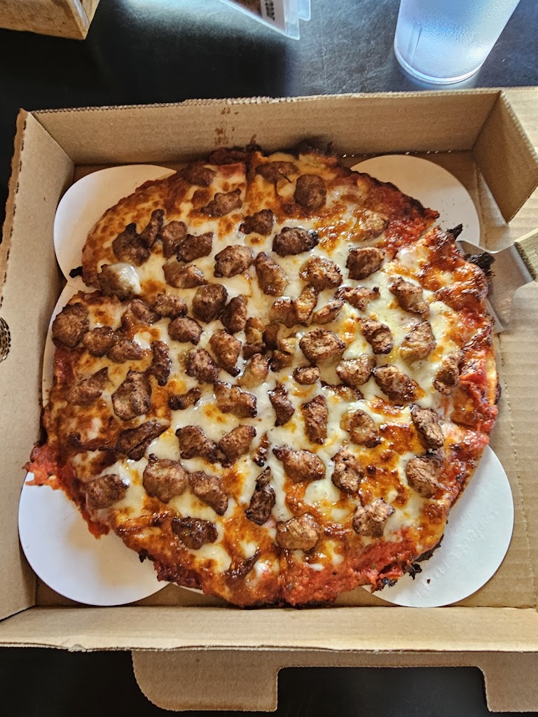Food is very good. I was pleased to discover that they offer a cauliflower crust and a wide variety of toppings. My grandkids love the cheesy breads. Self-serve drink fountain, place order at counter and they bring it to table, indoor seating or seating on the enclosed porch, friendly employees relaxed atmosphere, open on Mondays when many local restaurants are closed.They also offer take-out. Parking is limited during daytime hours. Worth checking out this restaurant and I will go back!