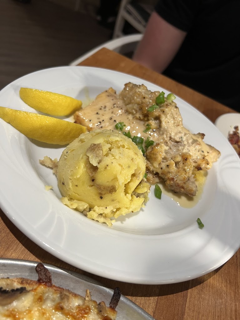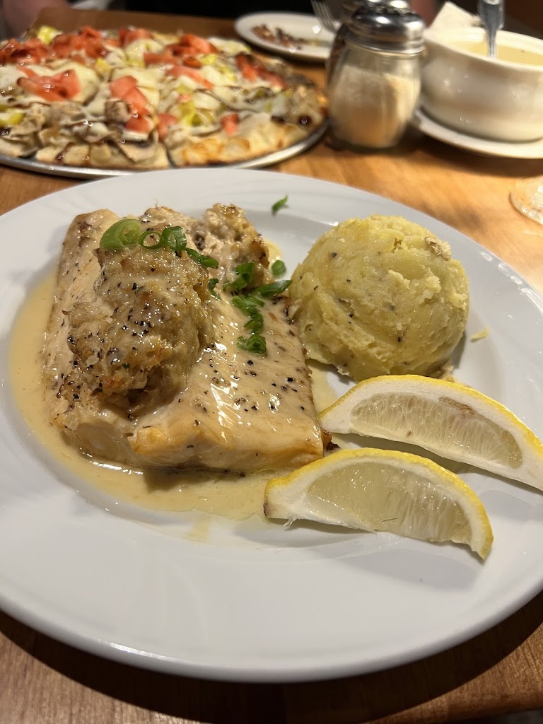 Clam chowder with plenty of hunks of fresh trout, amazing sauce with the mussels, and crusted whitefish was the perfect entree to split after the amazing apps. Fast service and watching the sunset on the patio was perfection