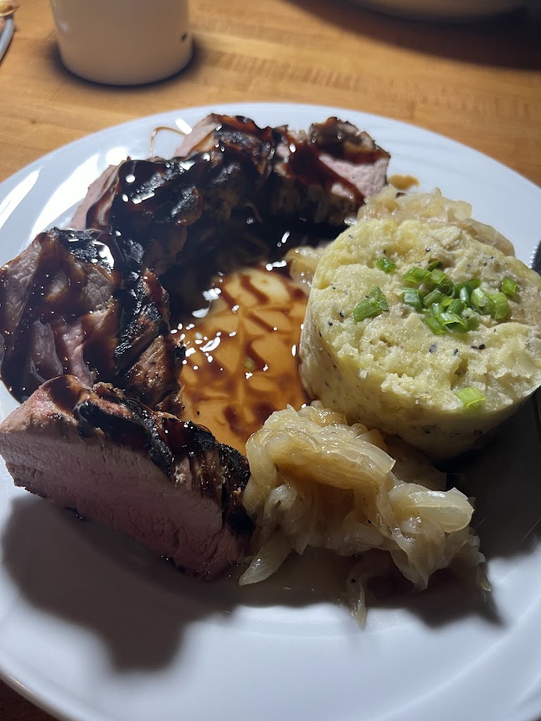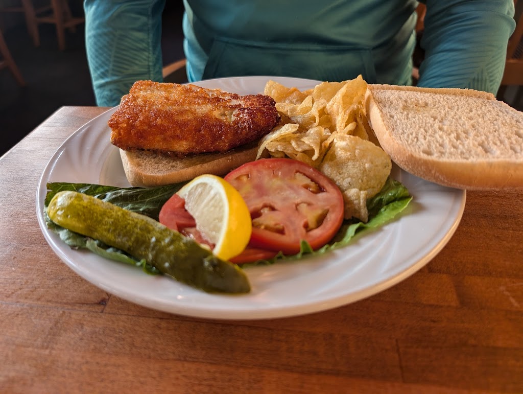 Only place open in LaPointe on a Thursday night! Nice restaurant, good service , wonderful lakeside view and we even saw the sunset. Had lake trout and whitefish, both from Lake Superior. Fish was excellent, the panko breading on the whitefish was light and crunchy, not a thick heavy batter, especially enjoyed. Only complaint no veggies. Entrees came with mashed potatoes. Especially for the price, including a small salad would be nice, or a choice of vegetable. We ordered roasted Brussels sprouts for a starter, which was very good.