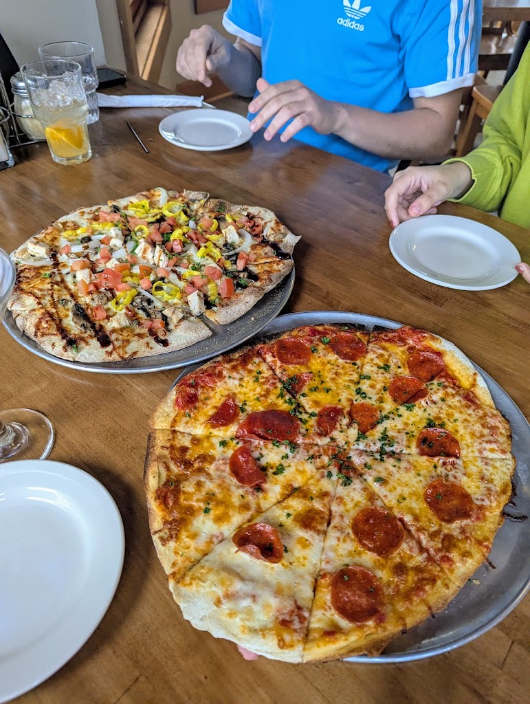 This pizza is a favorite for several members of the family. The fish chowder is also very good, and many friends have commented positively on it. Occasionally, they may miss something on a salad or a sandwich, but the good is generally quite good. The view from the windows onto the lake is very good.
