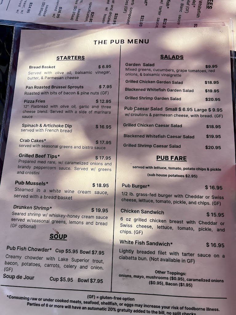 The food is very over priced, and the service was awful for me. Took an hour and a half to get done with our meal. Had to walk up to our server to get the check. The server messed up our order multiple times and clearly didn’t care about our table forgetting refills and sending food to wrong tables. But my burger was good and when I complained, being a server I don’t do this often, the manger halved the whole bill and looked very upset at the bad service we received and wished us to comeback. We didn’t return but the manger turned our whole experience around showing she cared and I would give the pub another shot. Good environment, decent food but over priced. But amazing management