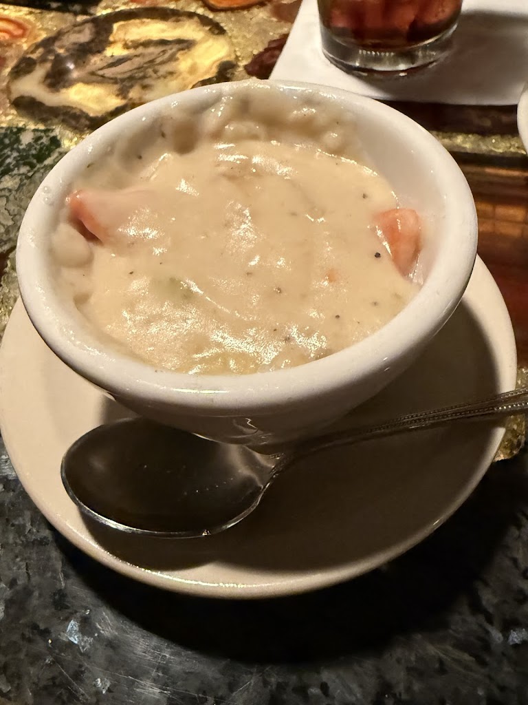 Service was very poor. We came in at 8pm which we knew they closed at 9. We sat at the bar and didn’t get acknowledged immediately. I had an old fashioned that was way too sweet. They asked us after if we were eating and got menus. I ordered the walleye special and my partner had a steak. We ordered our meal at 820 and our food was not delivered until well after 9. The dining room had cleared out by this point. Fairly certain the bartender did not put our order in until almost 9 when we were given a relish plate that we didn’t order. My partner then got the clam chowder she ordered and I got a bowl that I did not order as well. Our food came out shortly thereafter and it was in fact delicious. So the low rating is only because of the service.
