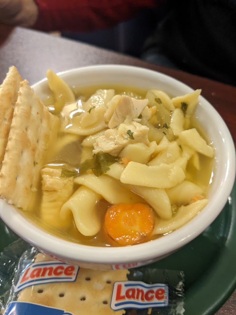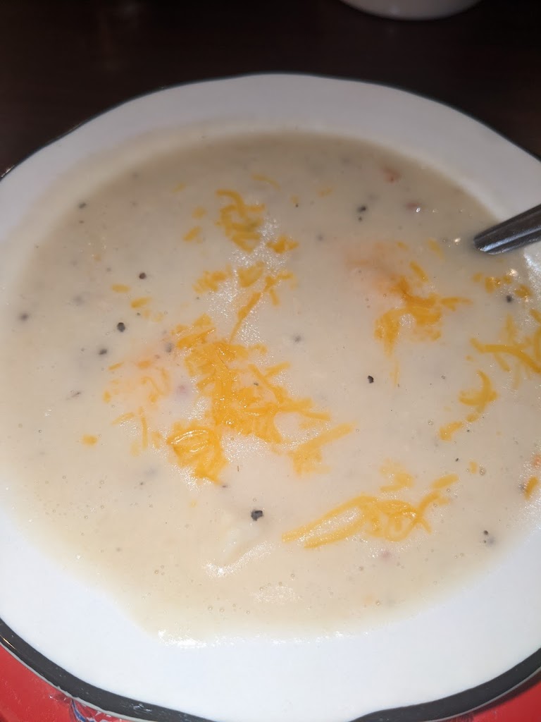 I had the shrimp basket, mashed potatoes, cottage cheese and a cup of potato soup. The soup was delicious, the mashed potatoes were great, the shrimp was perfect.