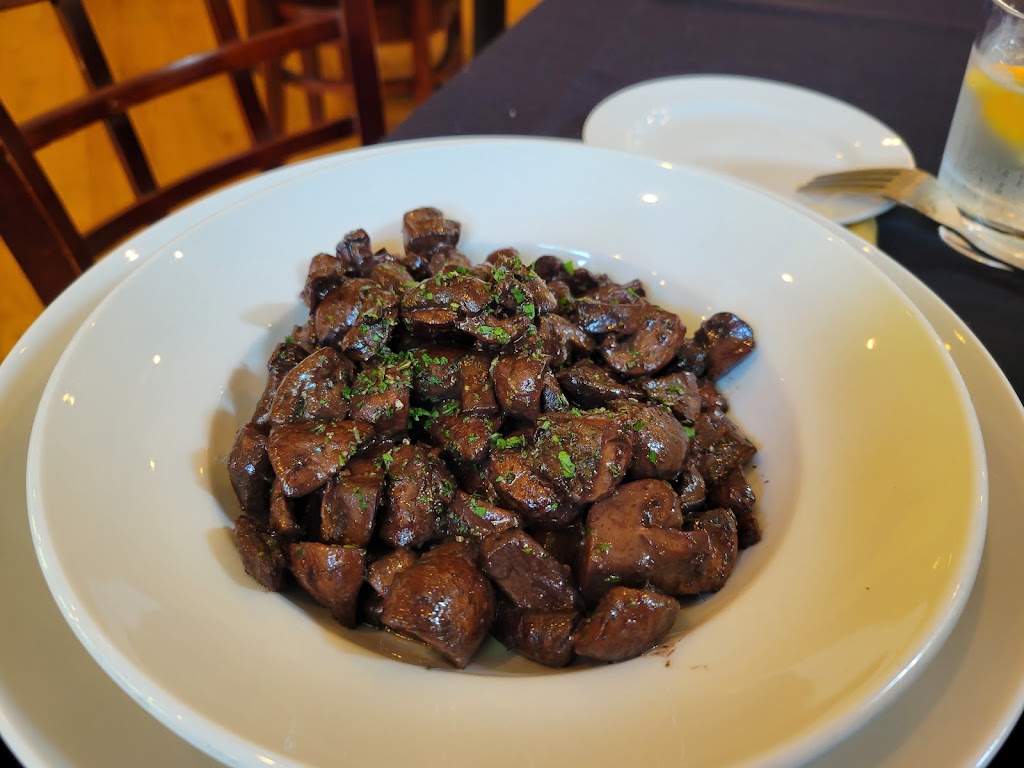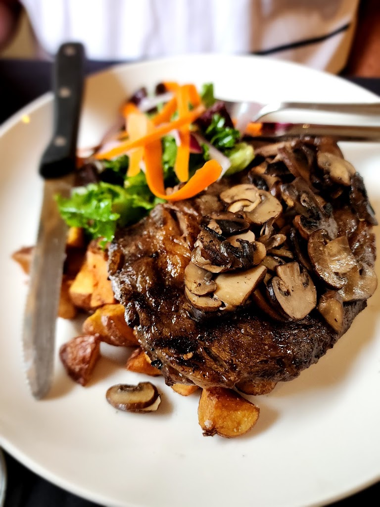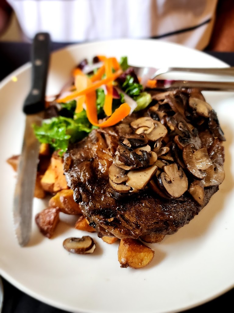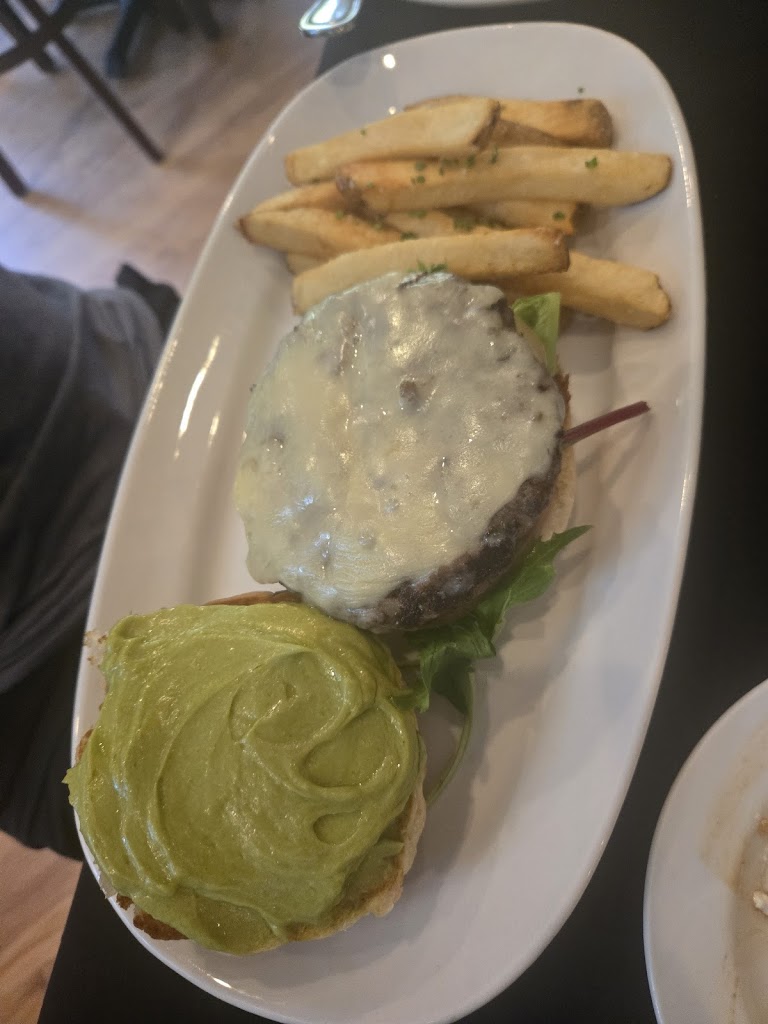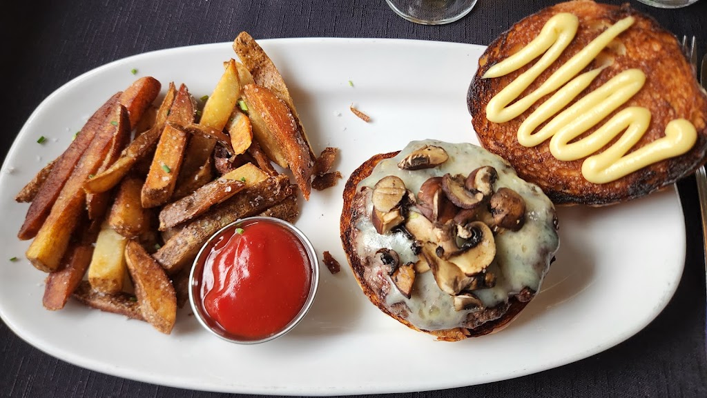 Food: Bison burger tasted great (and was cooked to the right level), but the brioche bun was literally fried in butter - to the point that it was hard to cut with a knife - instead of being lightly toasted. I wish the amount of mushrooms was triple, so that i could at least taste them.