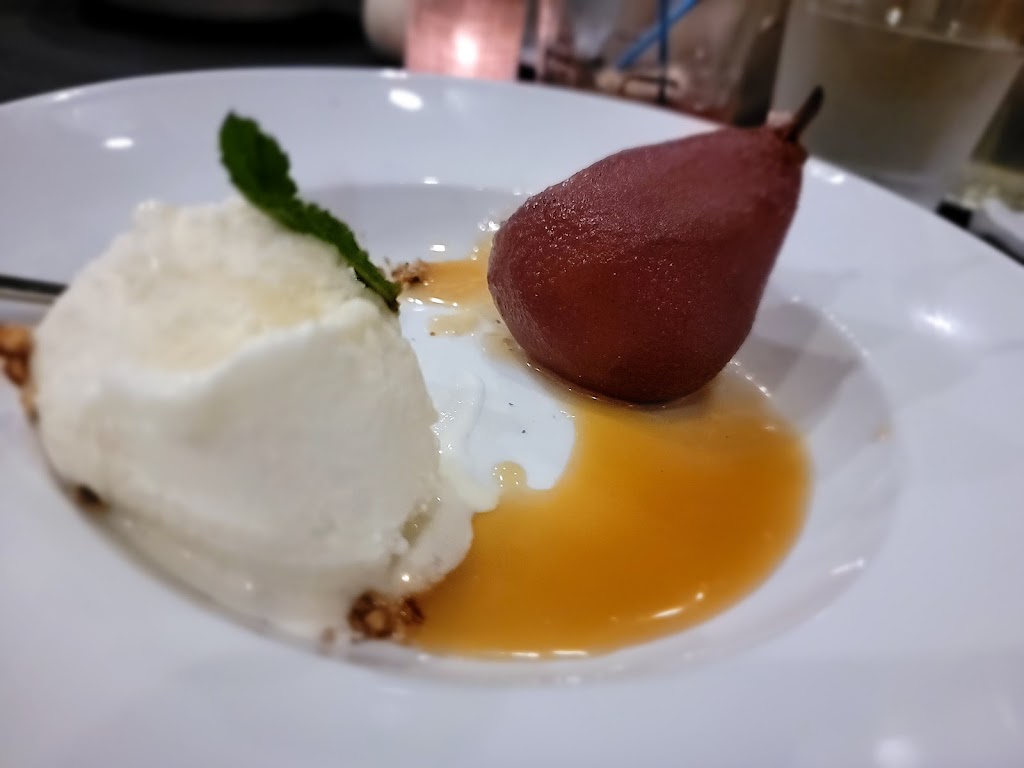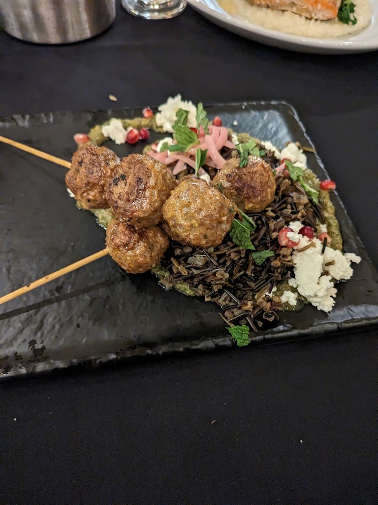 The Pork Orzo entree came and it was not up to fine dining standards…the orzo was overcooked and the meatballs were dry. They were actually hard and dry and looked “old” when the dish was presented. It was also not particularly hot in temperature…maybe lukewarm. After one bite, I asked the server if I could see a menu and she took the dish away.