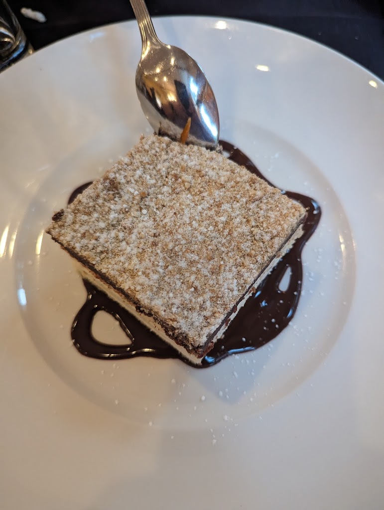 We had multiple drinks, an appetizer, 2 entrees, and a stellar dessert this time.
