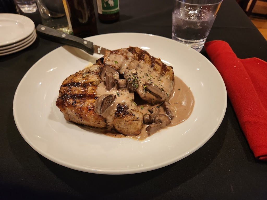 The roast chicken was good and we kept it and finished it. The flavors were very good. The cream sauce served with the veggies was not as warm as we would have liked it to be.