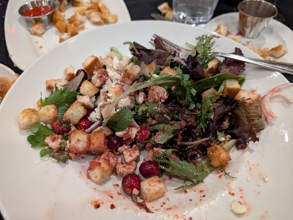 We decided to forgo dessert and asked for our bill. When she brought it to us…although the pork orzo price had been taken off the bill, the tip amount had not been changed to reflect the salad replacement. So we were actually being charged a 30% tip for the food we had consumed. We pointed it out to our server. The system wouldn’t allow them to change it to 20% so they ended up taking it off completely and we added 20% back onto our card for her tip.