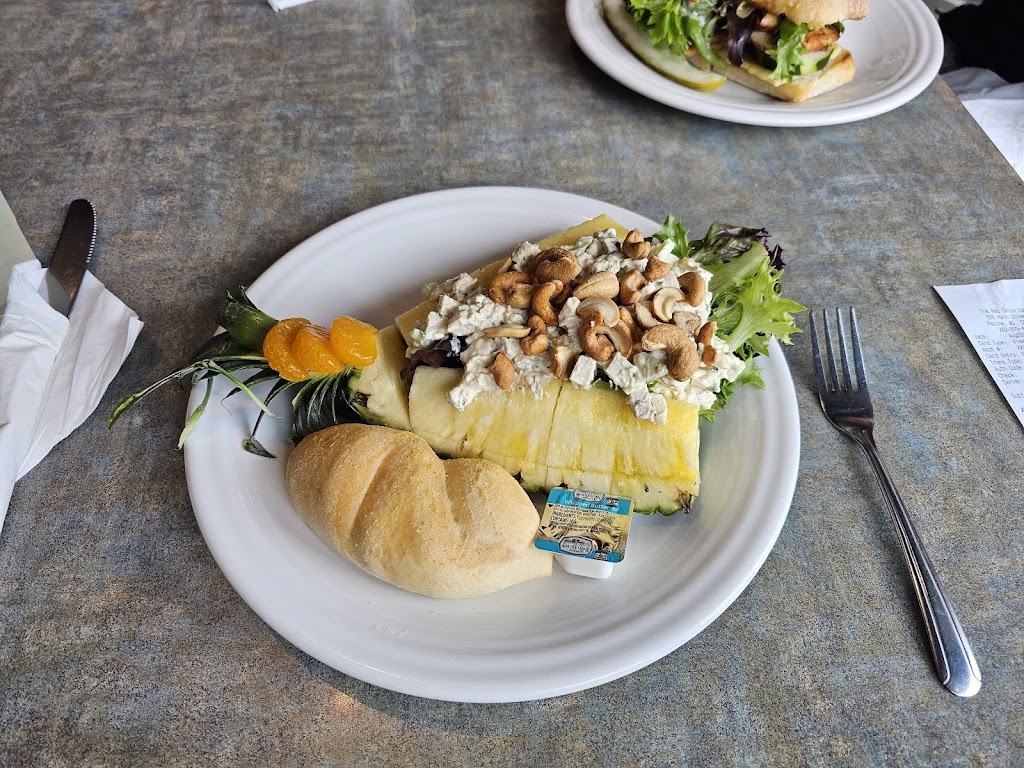 It was nearly noon and the place was starting to get busy. The staff were friendly and helpful with the menu. It was past breakfast we ordered a sandwich and salad. A TAB, Turkey, Apple and Bacon sandwich, with curry spread. And a Smoked Turkey, Apple and Cranberry Salad. Both were excellent. The roll with the salad was just okay (a piece of baguette would have been an improvement).