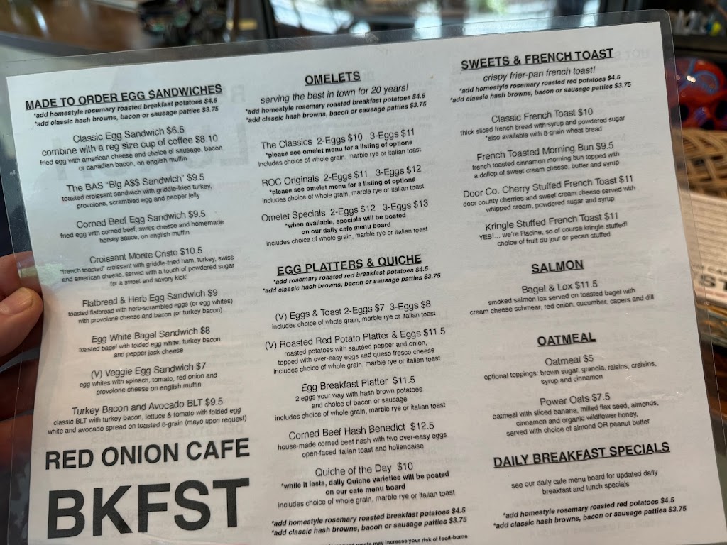 Updated Review - 12/30/23: My wife met a friend of ours for breakfast today at The Red Onion Cafe. I was surprised when she got home because she brought me my favorite… Bagels and Lox! Mmm!!! It was delicious! I get it almost every time I go there. As usual… I highly recommend The Red Onion Cafe!