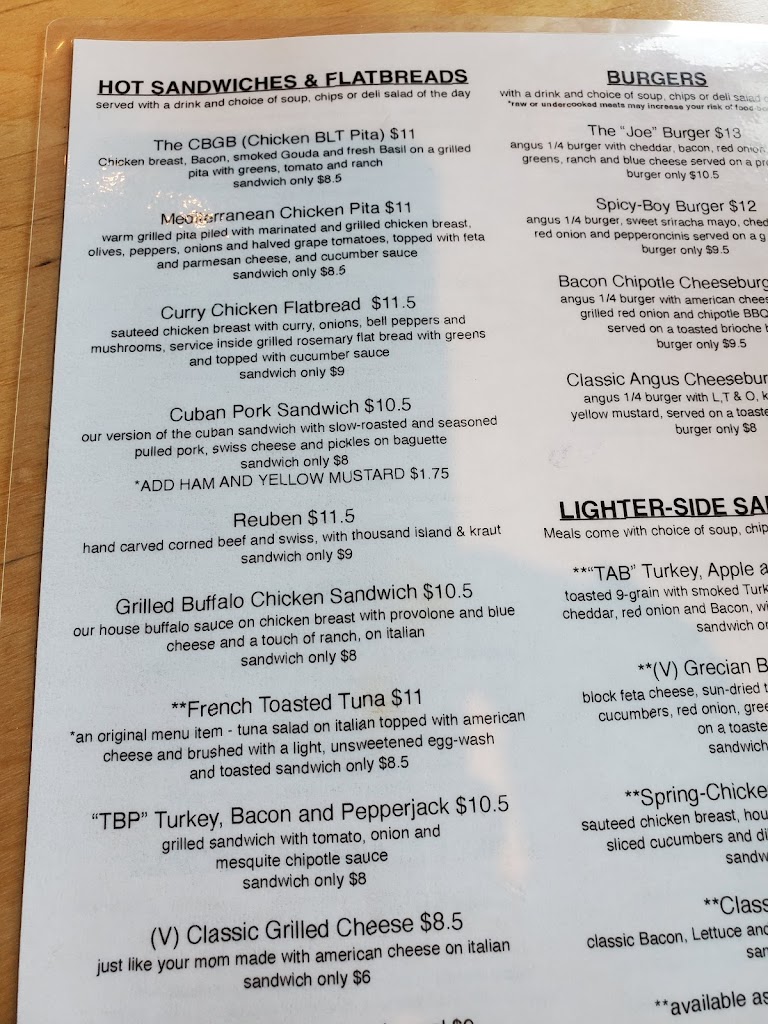 Excellent atmosphere with friendly and helpful service. Their food is always fresh and the menu has many sandwich/salad/soup options. Their menu is available online and I was able to know what I was going to order before I arrived. I did not wait longer than ten minutes for a hot sandwich at lunch time. Definitely would go again.