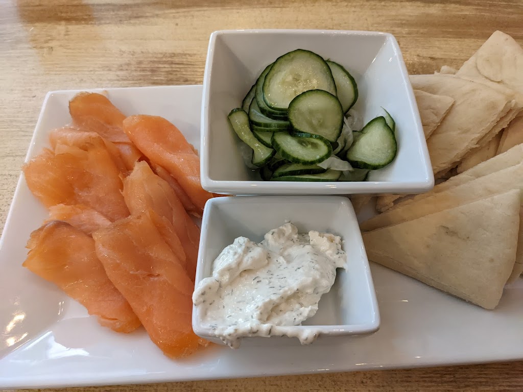 Smoked salmon plate was delicious and olive and goat cheese tray great too! Fast friendly service, fun decor. Highly recommended.
