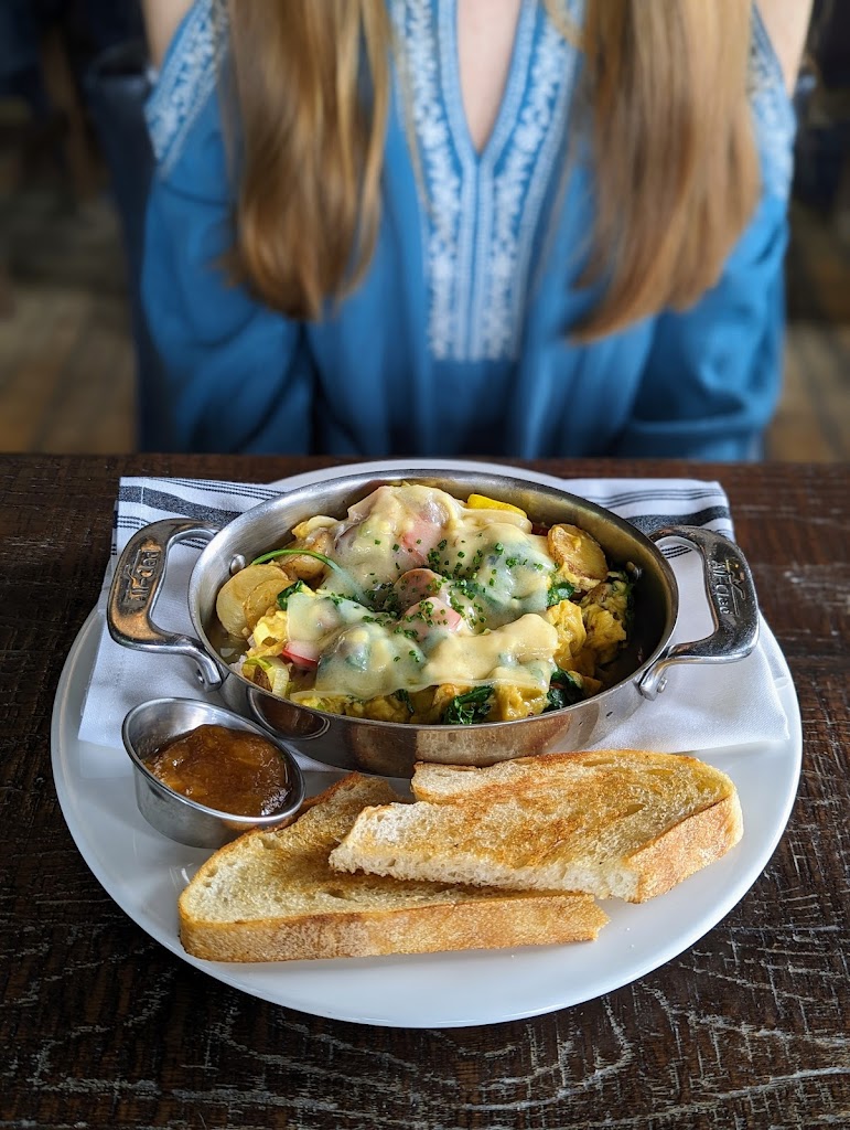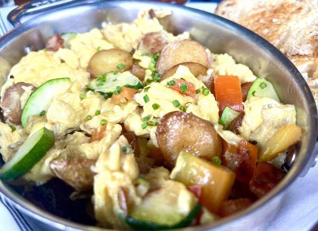 The farm scrambled veggies could of been cooked longer, I ordered it with cheese and it didn't have any. Some of the others had the stuffed french toast which they said was good but way to sweet. We did have a big group so the waitress didn't come back like I felt she could have. When she did she was chewing, so she definitely was taking time to eat herself.