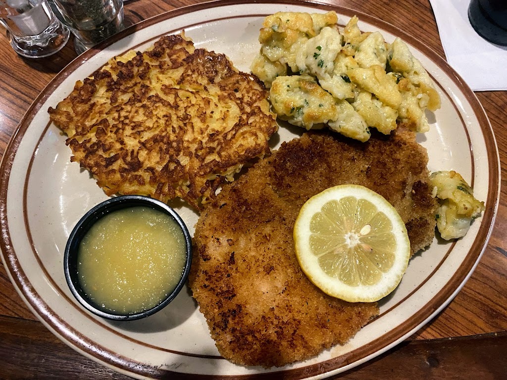 Second visit on a Tuesday, German night. I had the two entree sampler. Both were flavorless. The sides were worse, red cabbage was not fresh at all and tasted "old". Spaetzle was not prepared well, how do you toast Spaetzle? more like a dumpling than Spaetzle. Wife had perch, breading was thick and flavorless. Overall, food and atmosphere was worn and boring. Not coming back.