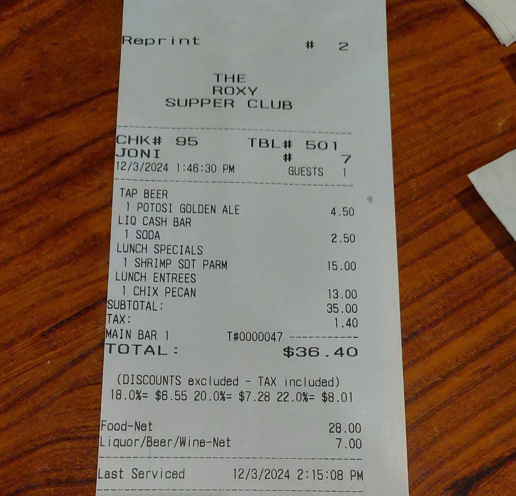 However, being that I had just spent approximately $20 on my meal, I felt it was necessary to call The Roxy, express my concerns, & search for a solution to rectify the situation.