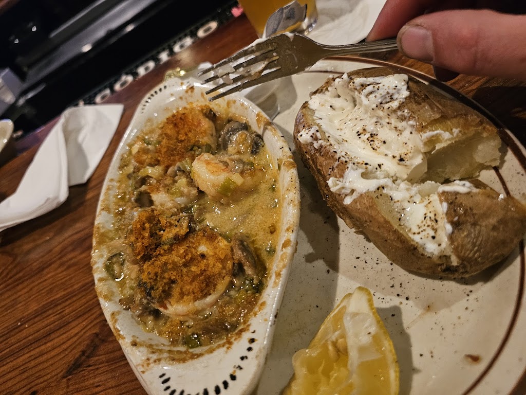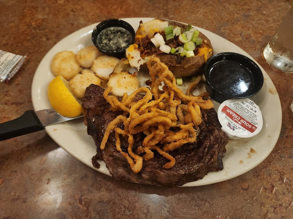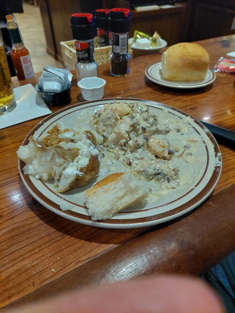 My husbands ribeye was excellent cooked perfectly .... to me they are always a little heavy handed with the salt..... and this time the shrimp in the shrimp alfredo was way over cooked but still better than I get at other local restaurants