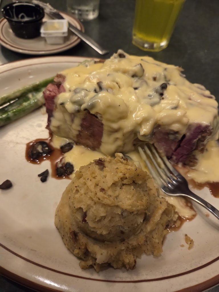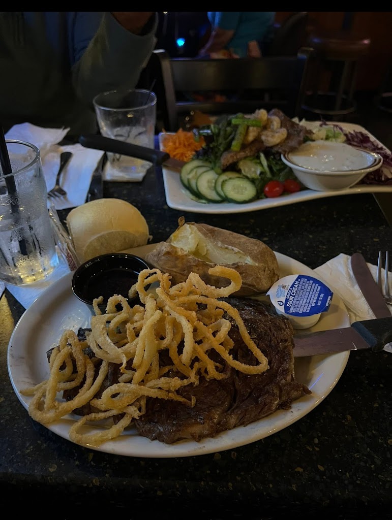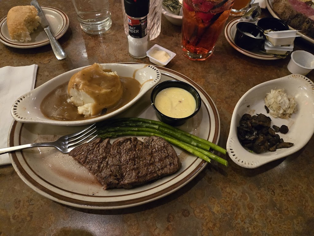 Steak was not good, especially for what we spent. Had leftovers, but was not good enough to take. Also they never refilled our drinks.