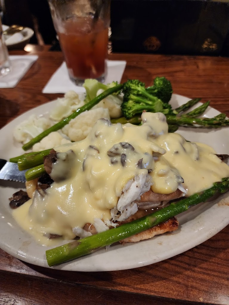 We've been coming to this restaurant for over 2 decades and this is the first time I have been utterly disappointed. We ate in the lounge for a shorter wait time; now we wish we would've waited for the dining room. The bartender was terrific, and the food was delicious as always, but the waitress had no idea about the menu. I ordered the Salmon Oscar dinner which should come with soup, salad, AND a side. My husband ordered the Veal Oscar dinner (Soup, salad, and side also should have been included.)