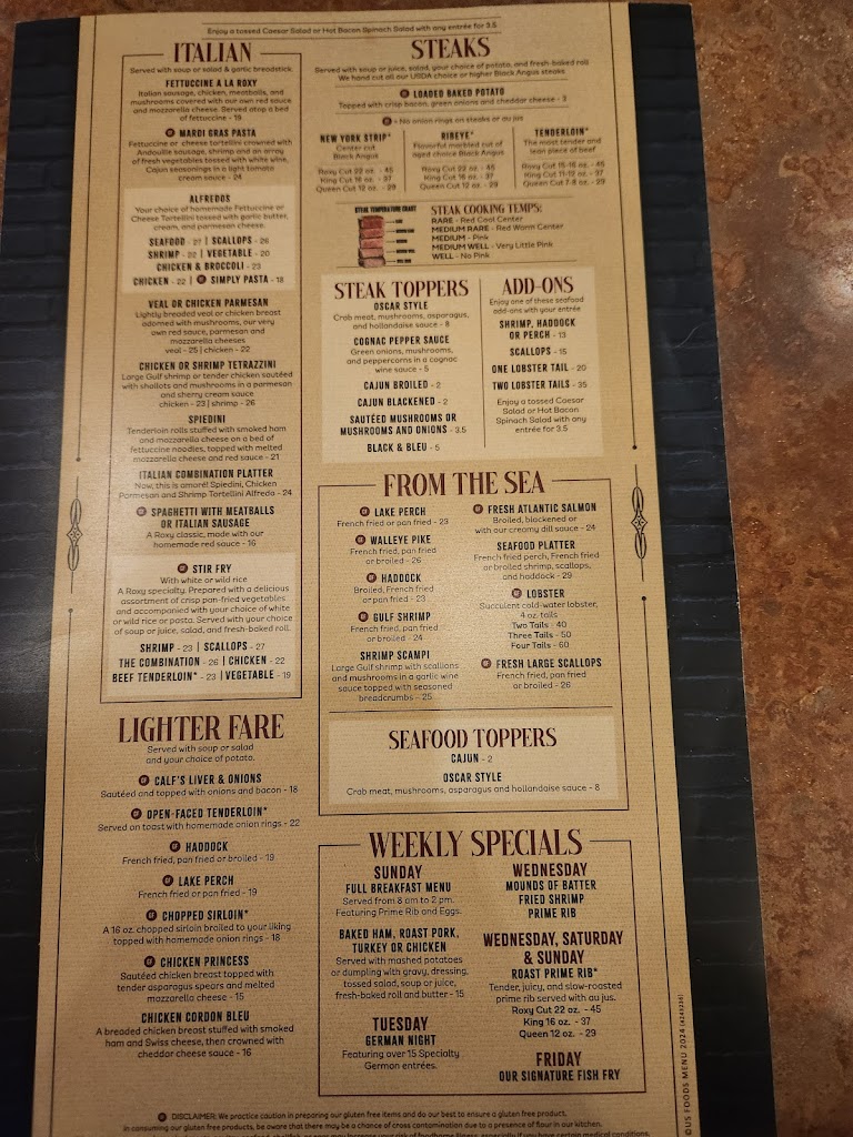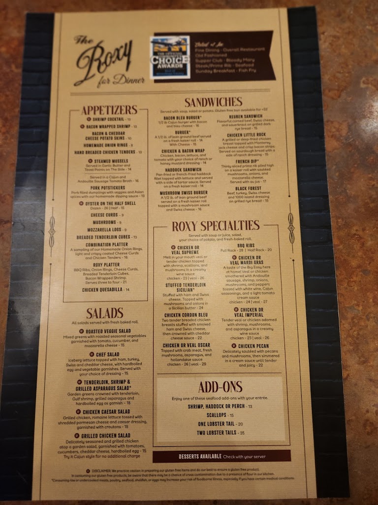 We had a reservation for 2:30 today Thanksgiving day. It is always our first pick to go out to eat. Food is always excellent! Hot and fresh fast service. You can't beat the Roxy!! The pumpkin pie was the best we ever ate. Thank you!! Our waitress was also super nice, fast, friendly and helpful. Bus gal was very helpful toooo. 💯💯💯💯💯