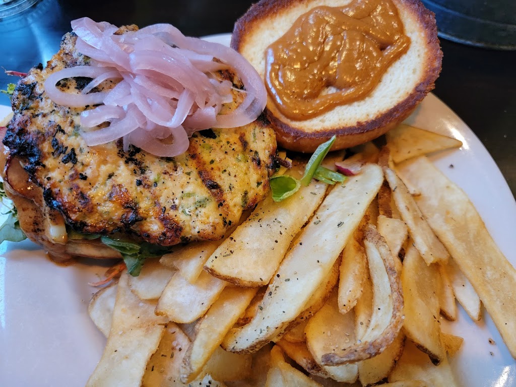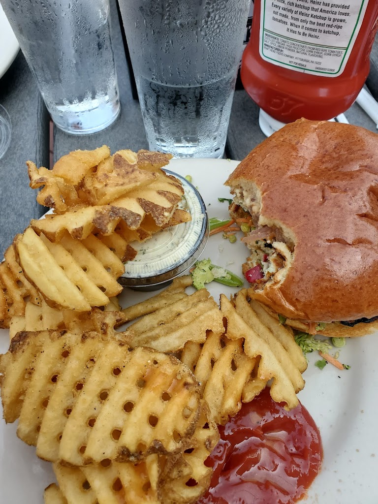 Great atmosphere, great food especially the waffle fries and the chips. The establishment is very clean including the bathroom. The Staff at this establishment is very courteous and attentive.We live over 100 miles away from this establishment but if Iβm in the area again I will definitely stop. It is a little pricey but the food is really good. The only downside is the parking area but it appears they are improving their parking lot.
