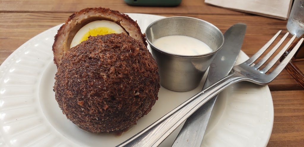 While road tripping on our motorcycles, we planned a stop here specifically to try the Scotch eggs. This place did not disappoint. The food was great! Loved the Scotch egg. The atmosphere and owners that we met were amazing people. We spent time talking with them. Very welcoming. I would highly recommend stopping by!