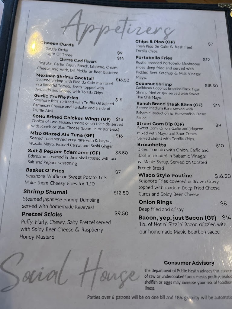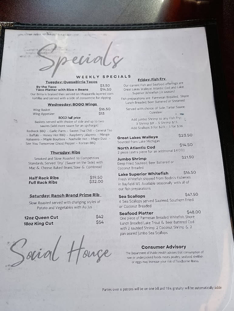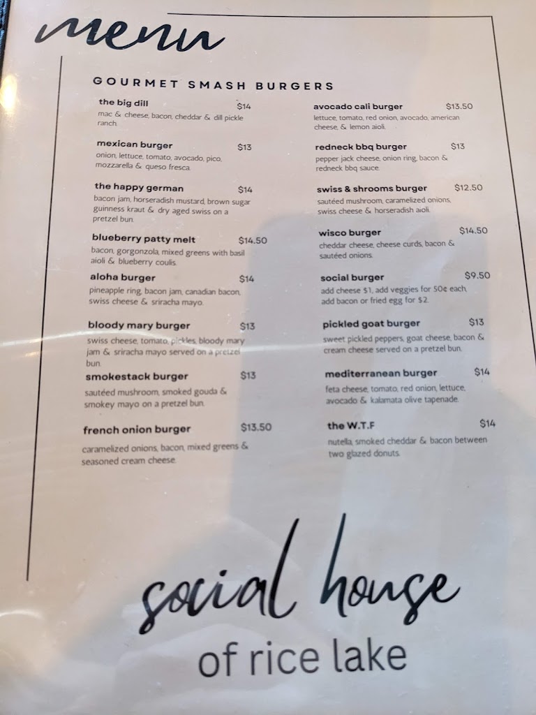 Upscale sports bar with gourmet burgers and elevated bar food. We proudly use local Angus beef from Antczak Angus. The Social House of Rice Lake is where great food and great people come together.