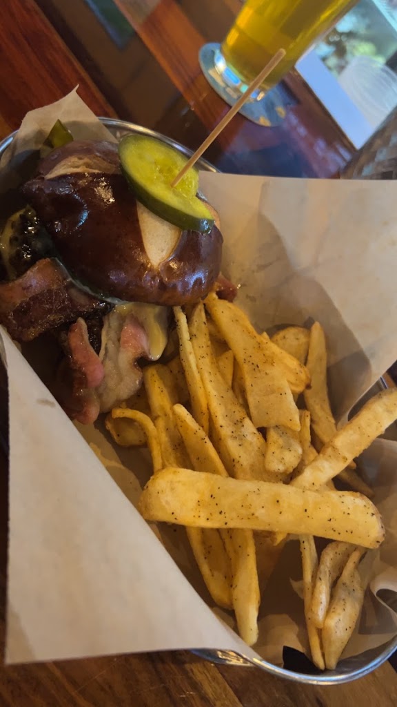 First visit- very busy which is great to see. I had the Swiss/mushroom burger which was excellent. The flat fries were excellent. We had the curd flight for an app. Seemed a little expensive but they were excellent as well, will order again. Kids enjoyed their food as well. There was a little wait, nothing that shouldn’t be expected with a full house. Wait staff were excellent as well. They seemed to work as a team really well as far as working each others tables and such. BEER: hope not to offend any of my bar owner friends locally but it was the cleanest tap beer I’ve drank in a long time. You can just tell when the lines are clean. (Yeah yeah yeah, I’m picky when it comes to tap beer)