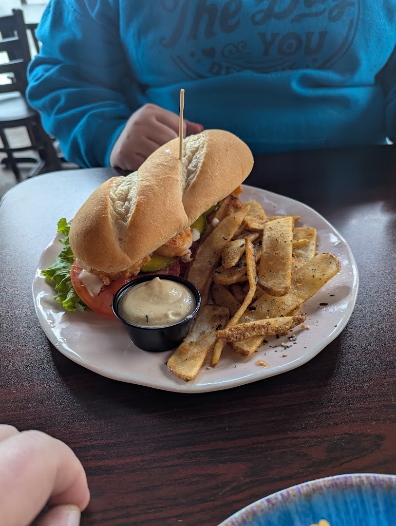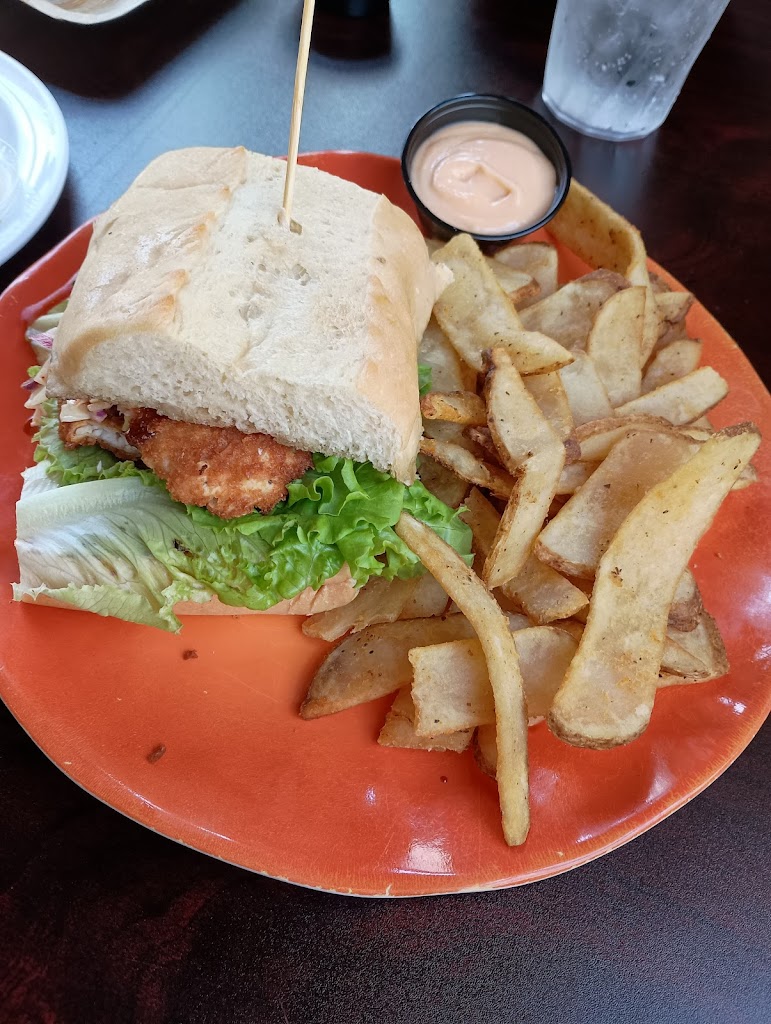 Have had other better experiences here but this last time my family and I were there it wasn't the best. It took quite a while for our server to take our order despite there being a total of 5 servers present. Nevertheless, she was kind and had a good attitude. The food wasn't the best either though unfortunately. It took a little while to come out and the pulled pork was so greasy it disintegrated the bottom bun on the sandwich and I found quite a few fish spines in my fish tacos. Again, I've had other better experiences there though in the past.