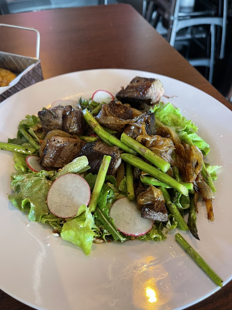 First time, won’t be my last time. Service is great and friendly. I went with the Tri-Tip Salad and Seashore Fries. Highly recommend! The fries are like thin steak fries. A great invention. Steak was cooked perfect. The highlight for me was the pecans. I almost asked for it without them, but they ended up being a fantastic surprise of flavor and really completed the salad.