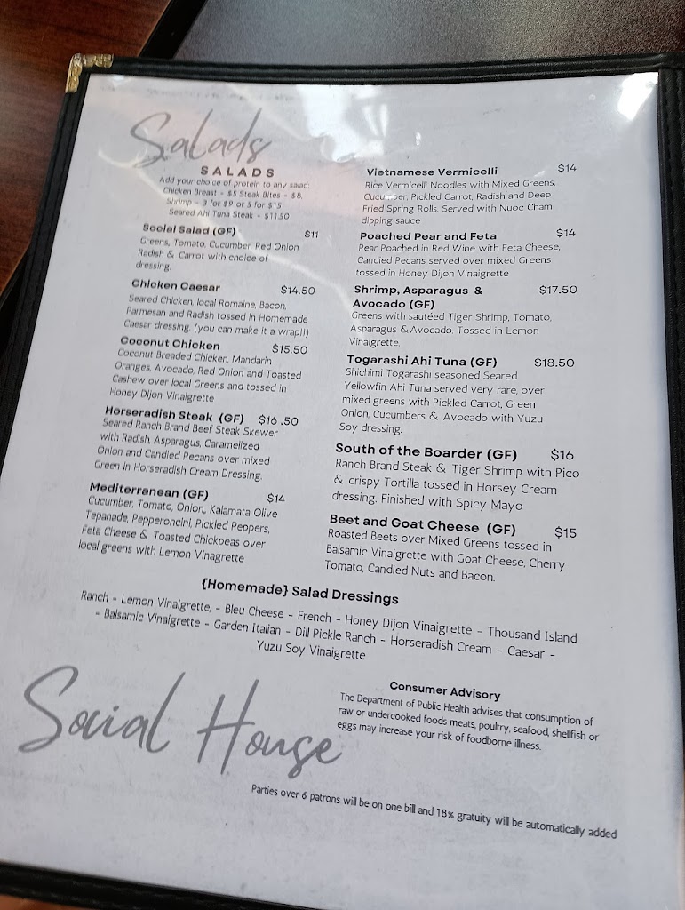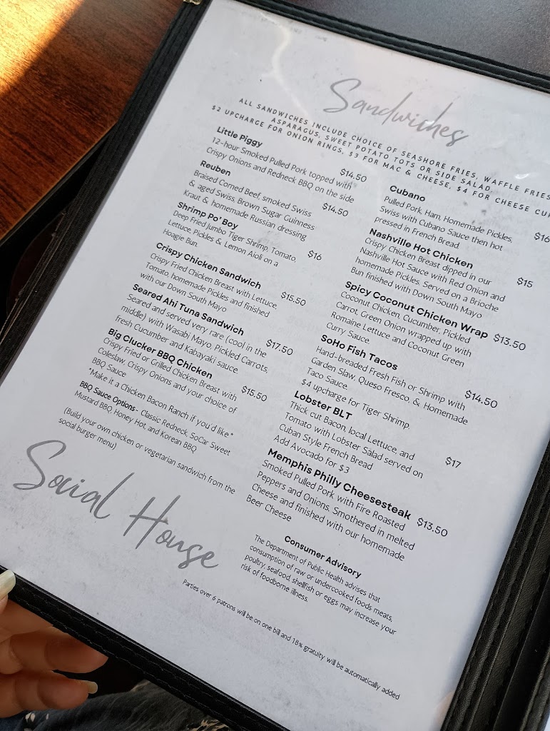 The Social House never disappoints. The place was packed like usual, the food was hot, fresh and cooked to perfection, the waitress was friendly and fast. We were seated near the table who ordered from the lunch menu, yet left a bad review. Don't let their petty review keep you from this TOP NOTCH, small town gem. Thank you to the staff that worked so hard tonight!