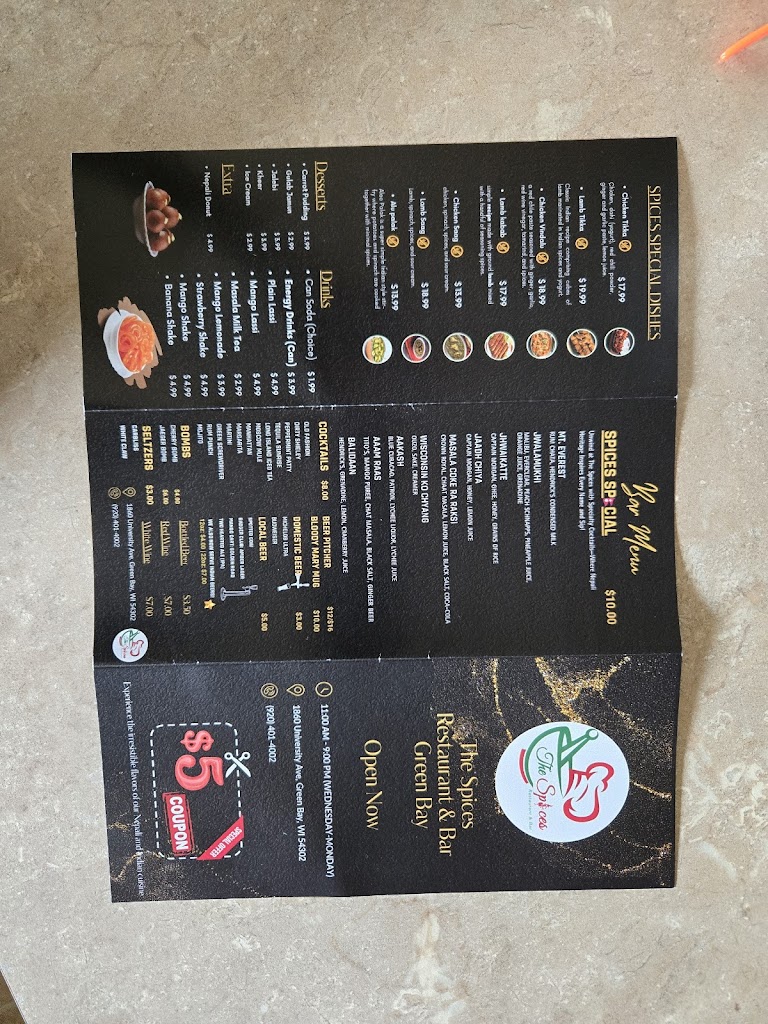 Friendly staff and very tasty food! Definitely happy to have The Spices in Green Bay!