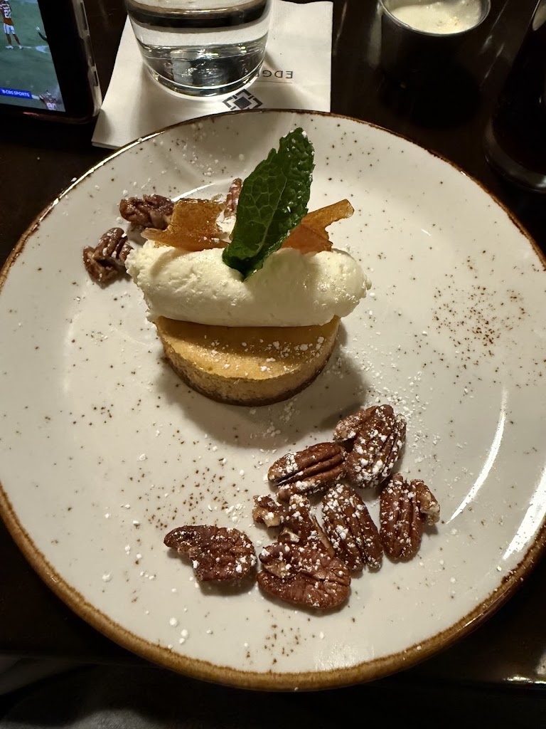 The Statehouse was great! I will say the atmosphere is a tad on the upscale side and I was definitely not dressed for the occasion. No worries though, I was still able to sit down and enjoy a great meal. I stated off with the Chicken Wings in the traditional buffalo sauce followed up with the Roasted Salmon. Yes, the salmon is half eaten, sometimes I just dig in before I remember to snap a few photos but the wings and salmon were good. The risotto was OK. I haven’t had much risotto and I’m beginning to think I’m not mush of a fan. I finished up my meal with the Autumn Cheesecake and I was expecting a little more from this dessert than I got. I guess I kept expecting pumpkin cheese cake due to the color but it’s definitely a much or mild and softer cheesecake than what I was expecting. Overall, I enjoyed The Statehouse and my meal.