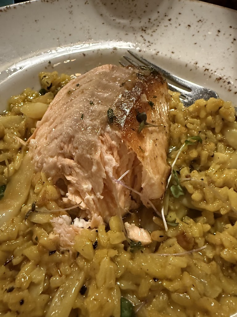 We showed up on time and had to wait 30 minutes for our table. They seated us outside on the patio. Beautiful view of lake but too dark to see our food when it arrived. Food, especially for the price was kitchen nightmare material. Croquettes were cold in the center. Salmon served skin side up. Steak was charred, though medium rare as requested inside. Wine pour was ungenerous.