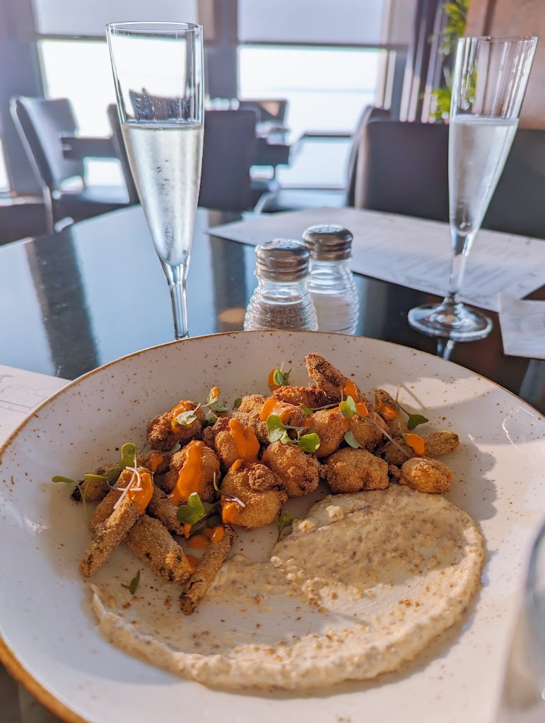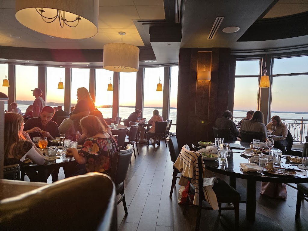 Service was good, views were amazing especially at sunset, food was meh (steak was dry and veggies and potatoes were cold and burger was just ok), parking was easy and the dessert was awesome (which was complimentary due to a special event). Would like to try brunch here sometime.