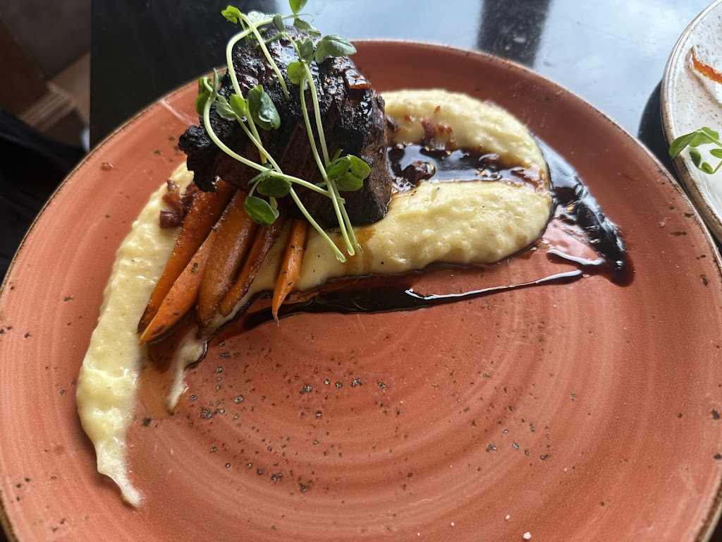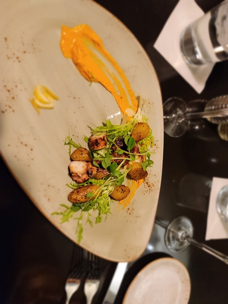 Atmosphere & the view was great. We ordered a raspberry mojito that was delicious. The food was well prepared, filled with flavor, cooked as ordered, and presented well. Would definitely recommend the spanish octopus, the tacos, and mushroom muchetta & lamb.The staff at the front was courteous and provided a positive experience as well. We will definitely be returning.
