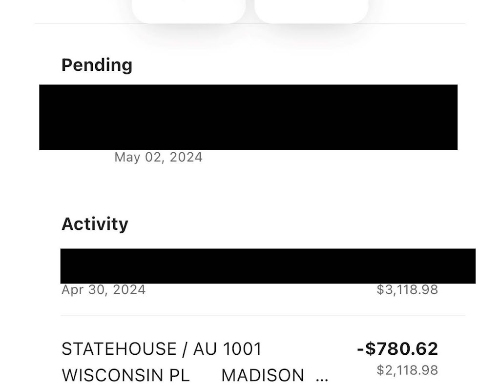 Additionally, I had to cancel my credit card that I gave the Statehouse to pay for the meal because there was an unauthorized charge on my card following this incident. I cannot be certain the unauthorized charge was a result of the Statehouse’s carelessness with my financial information (having my credit card number written down on on a piece of paper that is accessible to others), but it is the only security issue I am aware of with someone else having access to my credit card information.
