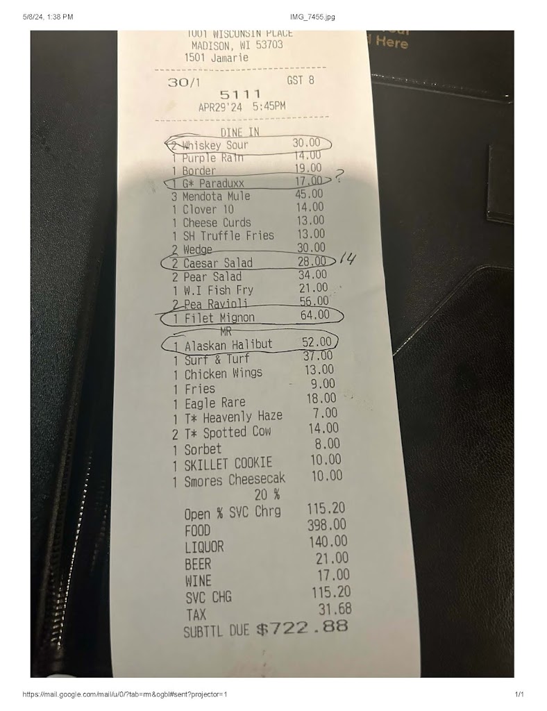 They (my parents) told me their server didn’t say anything about it at their dinner, and my parents paid their $250 bill in cash on their own.