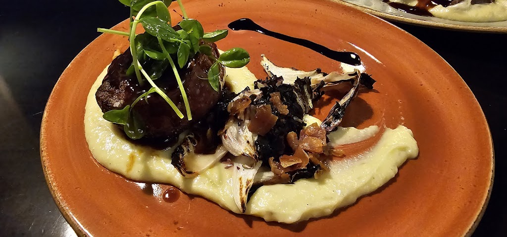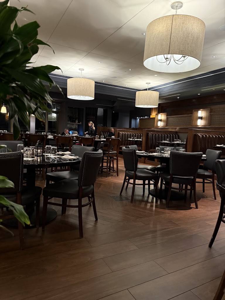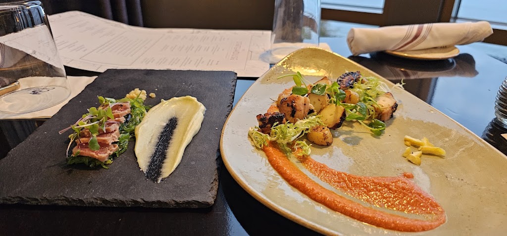 Beautiful restaurant looking out over the lake. The service was excellent, our server gave good recommendations and pairing suggestions. The atmosphere was top-notch. Nice lighting, dimmed but not too dark with stylish furniture. The food was the best, though! Excellent flavor profiles on their salads, tender steak, mouth watering truffle mashed potatoes, melt in your mouth roasted vegetables, and some of the best tasting desserts out there. The autumn cheesecake, give it a whirl!