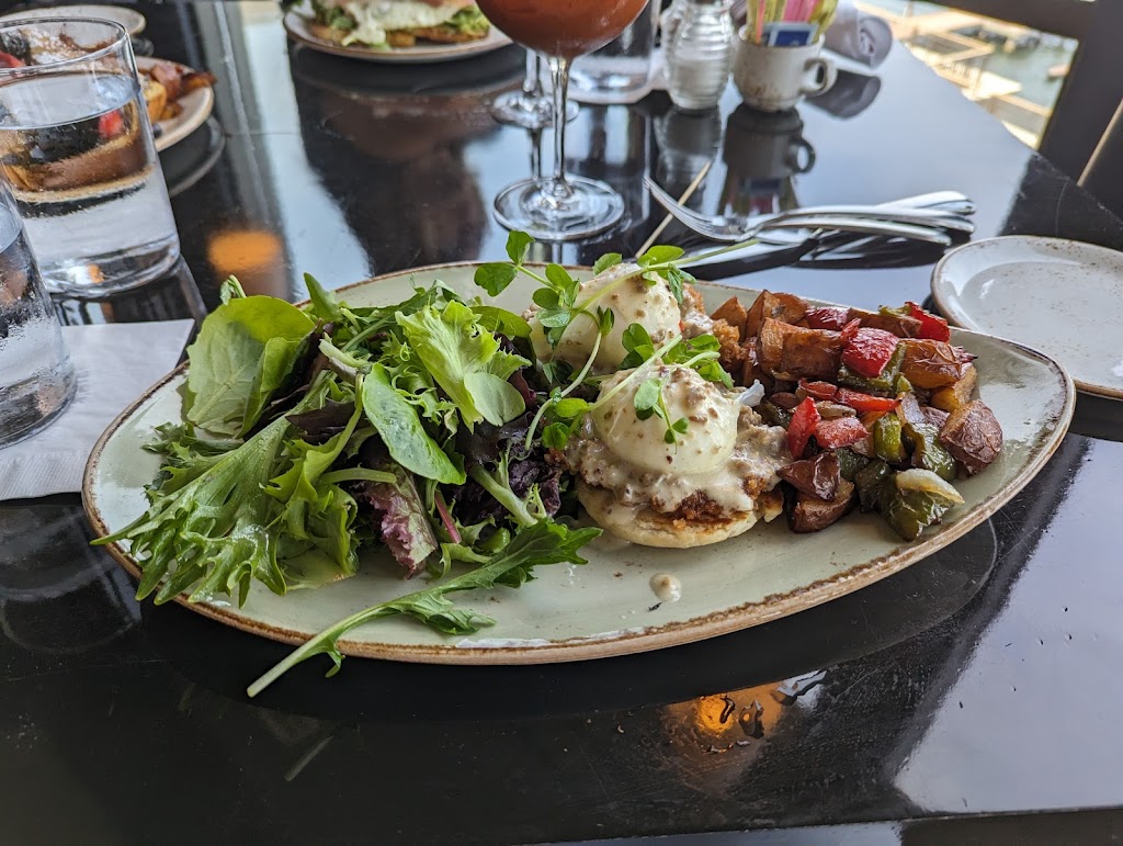 Service was slow despite being pretty slow for breakfast. They forgot the chives and capers on my Benedict, but food was delicious.