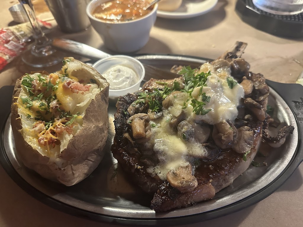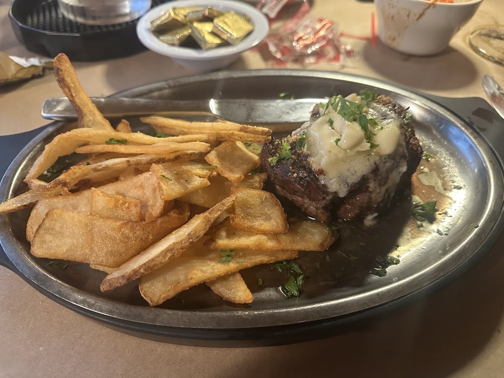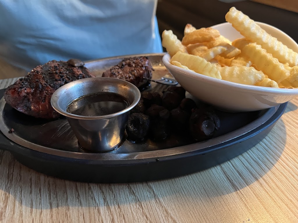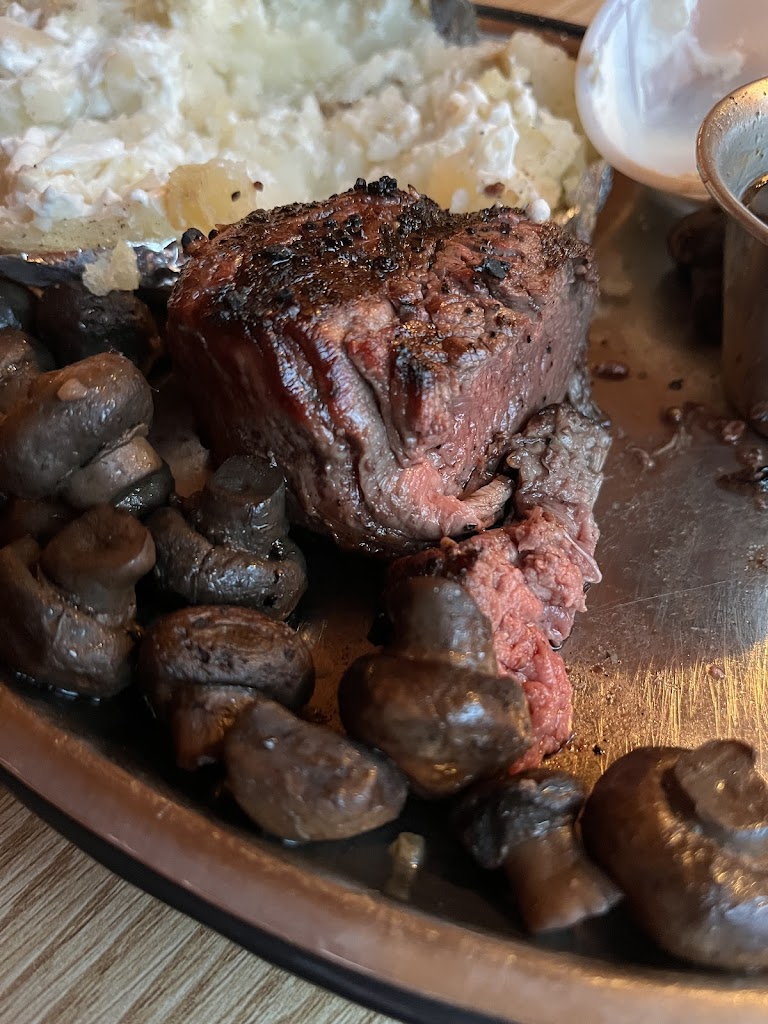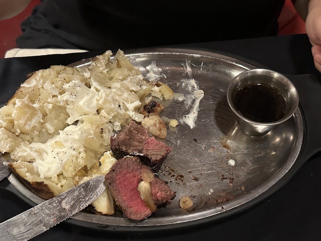 My partner got the 6oz filet mignon with a baked potato. They said it was really really good. One nice part about the steak was that it was served with a side of au jus, very nice little touch.