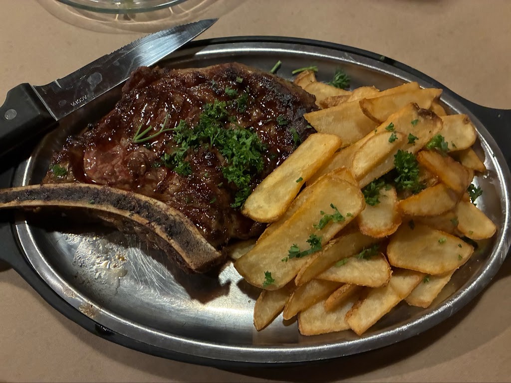 Orderdthe ribeye rare and fries. The steak was very tuff for 45 dollar steaknd over cooked for rare.