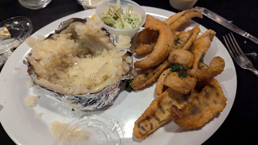 We went for the Friday Fish Fry, and the food was delicious! We both got the cod, which included 3 pieces with cole slaw, rye bread, and fries. The cost was $14. We upgraded to baked potatoes for $3 each. We could have done some other upgrades, including salad bar, but we chose an Old Fashion and a frozen Margherita, instead! Great atmosphere. Good service!! Can't wait to go back!