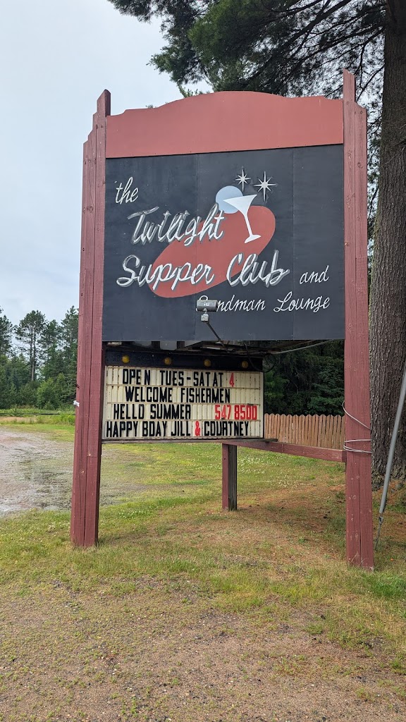 The Twighlght is back to its Nortwoods Supperclub roots, with a more relaxed atmosphere, soup & salad bar, bar food service, nice wine list, very popular Ol' fashions and the best prime rib north of highway 8! Bring some patience, as the hired help is great, they're just not plentiful in these parts, enjoy the experience that's offered and it won't disappoint!