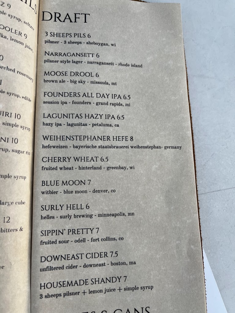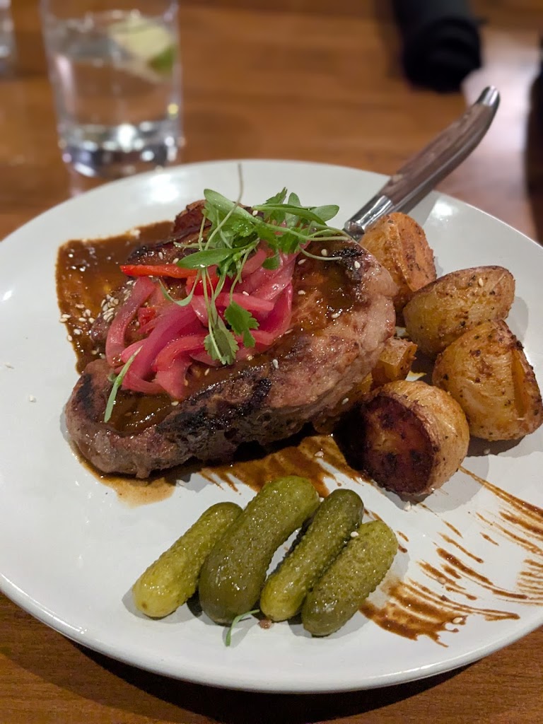 Bougie yet not pretentious. All around great menu. Chimichurri bread is a crowd pleasing shared plate and a great bar snack. Cocktail menu is interesting but not everything is for everyone. Great beer selection and thank God it's not just a million different IPA's. They actually have variety. I'd highly recommend their Oaxaca old fashioned with their house made bitters. Your average entree item is $25 with a few items as high as $36. For a nice place like this, I don't think you can do better. Photograph worthy plates. Great service. Accommodating staff. You can't go wrong with this place.